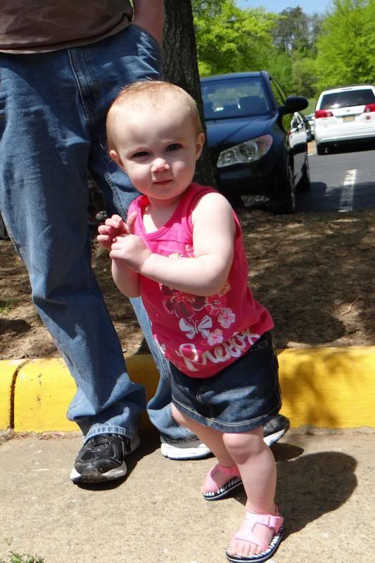 She had her 15 month follow up yesterday. She's 20 lbs, 13 oz (20th percentile for weight) and 32 inches long (90th percentile for height). She's so tall and lanky. She's got the waist of a 12 month old, but she's almost as tall as a 2 year old. Finding pants for this kid is impossible. Usually 18 months will work as long as it has elastic all the way around the waist band. The Children's Place also has pants that work really well for her too. She also apparently has allergies. The last week she has been coughing really bad only at night. Like so bad that no one has gotten any sleep from it. I told her doctor and she told me that even though she doesn't like to give medicine, it sounds like Karley needed it, and recommended Zyrtec. I gave her some last night and like magic, no coughing. She's following my path in the allergy world, unfortunately. I was expecting it but praying she wouldn't have to go through it. They don't do allergy testing until 2 years old usually though, so I have no idea to what she is allergic too. Other than the allergy issue, she said Karley is doing awesome and growing well. No worries - so YAY!