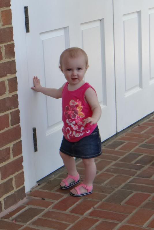 So yesterday I was about ready to walk out the door, but I had to put our dogs upstairs. I locked the baby gate so Karley would have her toys and not follow me up the stairs. I put the dogs away, I start walking down the stairs and see that Karley had grabbed my soda can and was trying to drink from it. Of course, she completely drenched herself.... like she was dripping with liquid. I said "KARLEY!" and she looked at me all innocent with the can still in her hands and turned sideways and said "YUMMMM!" Ugh. It wasn't funny at the moment, but I couldn't quit giggling about it all day yesterday. I wish I could have gotten a picture of her standing there like that. Better yet, a video. It was too funny!