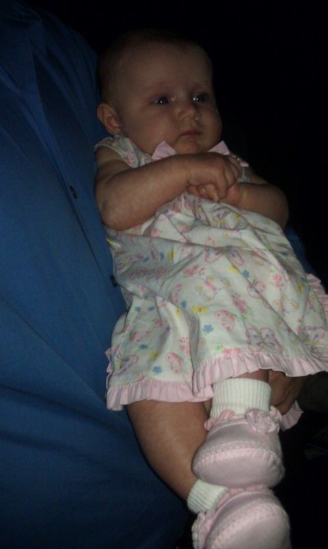3 months old, the day of her baby dedication at church. She fell asleep in the elder's arms during the dedication. :-)
